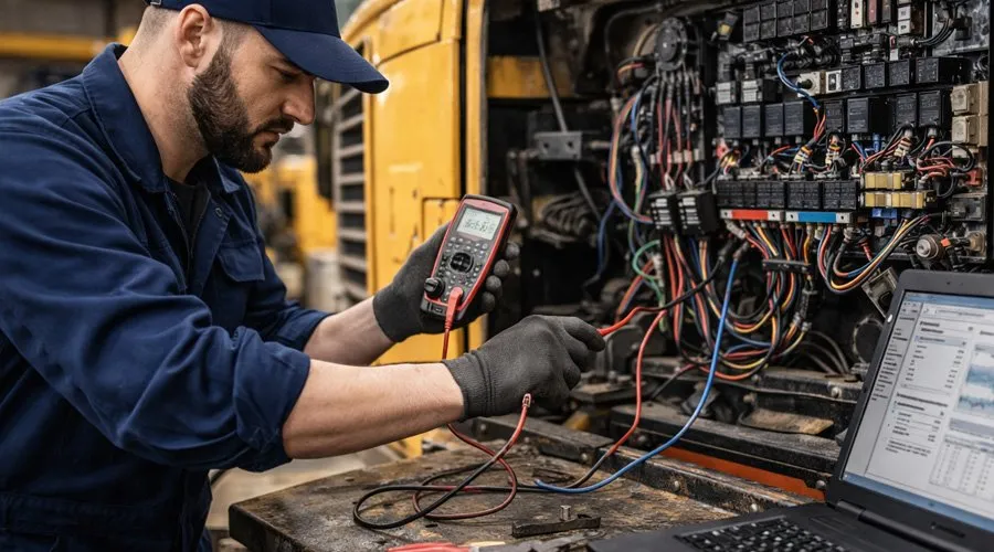 İşmak Servis Firması olarak, modern iş makinelerinin işleyişini sağlayan teknolojik altyapının ne kadar hayati bir öneme sahip olduğunun bilincindeyiz. Günümüzde endüstriyel ekipmanlar, tamamen entegre edilmiş karmaşık elektrik ve elektronik sistemler ile yönetilmektedir. İş makinelerinizde oluşabilecek tüm elektrik ve elektronik arızaları uzman ekibimizle en ince ayrıntısına kadar tespit ediyor, projelerinizin aksamaması için sorunları kısa sürede gideriyoruz.